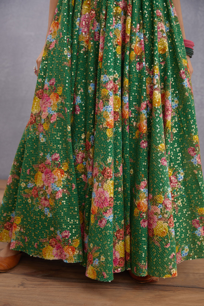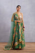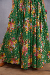 This Panna Rabia Sitara Odhni is a beautiful combination of Butterfly Net and Cotton Silk fabric with Digital Print, Hand Embroidery and Hand Adda Work. It comes in a vivid Green hue, perfect for making a statement. This piece is perfect for an elegant evening look.