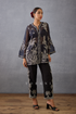 The Raat Rani Aabia Jacket is a beautiful evening dress made with luxurious Silk Organza fabric and Hand embroidery and Hand Block print techniques. It comes in eye-catching black colour, perfect for making a statement at any formal event. Get ready to be the centre of attention in this show-stopping piece.