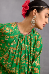 Experience comfort and style with the Rang Naaz Amrut Maxi Dress. Crafted from 100% Slub Silk fabric, the rich green colour of the dress is enhanced with a digital Bhagalpuri print pattern. The maxi dress features churidaar sleeves and is tailored to provide superior comfort. Enjoy a stylish look and maximum comfort with the Amrut Maxi Dress.