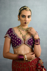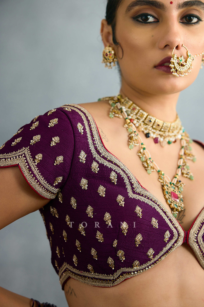 Inspired from the traditional Indian choli, this Raqse Raisa Blouse is the perfect mix of tradition and modernity. Pair it with your choice of attire- the lush jeni silk is embroidered with beautiful zari to create the perfect luxury companion.