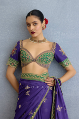 The Raqse Mayuri Nalini Blouse is crafted from Jeni silk and embroidered with intricate dori work, traditional dabka and badla embroidery in rose gold and gold threads, along with pearl details for an enchanting look. Wear it as a choli or with a saree—the elegance of this blouse is unmatched in every way.