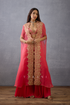 This Gul-Kand Zarra Cape is a perfect combination of contemporary and classic style. Its fabric is crafted from a premium mix of sheer Silk Organza with Hand embroidery, Dori embroidery, and Hand Adda work. The set is available in a gorgeous shade of pink, making it a timeless statement piece.