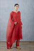 The Surkh Abhra Kurta Set is a glamorous ensemble crafted with silk organza, handwoven chanderi and cotton silk fabrics. Boasting intricate aari embroidery in a vibrant red shade, this set features a kurta, pants and an odhni for a complete look. Show off your style with this beautiful, timeless design.