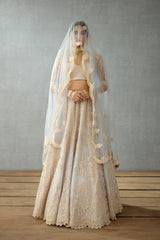 Experience the beauty and elegance of Samsara Hansini Odhni. Crafted from superior Butterfly Net fabric, this Odhni features intricate blue Dori embroidery for an undeniably luxurious look. Get ready to make an impression.