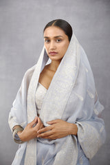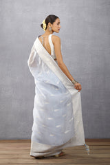 The Samsara Roonhi Saree is a timeless, elegant piece for any occasion. Crafted from a luxurious combination of silk chiffon and cotton silk, it is decorated with beautiful hand embroidery, mirror work, hand adda work, and ruching. Its ivory hue instantly adds sophistication to any wardrobe.