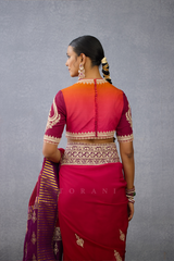 The Saroj Amaya Blouse is a stylish addition to any wardrobe. Crafted in Jeni Silk and adorned with intricate embroidery, this ombre blouse adds an elegant, feminine touch to the saree.
