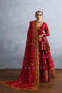Crafted in Jeni & Organza link, this Odhni is embellished with beautiful Zari and Dori work- a luxurious piece in the regal shade of red.