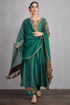 Look and feel your best with this gorgeous Sheesham Barkha Kurta Set. Crafted from handwoven Chanderi fabric, the set includes a kurta, pants, and odhni in green with Aari Waraq embroidery. Perfect for special occasions or everyday wear, you'll be sure to turn heads.
