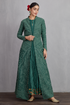 This elegant Sheesham Nakshi Jacket is expertly crafted from Handwoven Chanderi fabric, which makes it light and airy. The intricate detailing such as Hand embroidery and Dori embroidery is finished in a green hue, creating an eye-catching design. Perfect for special occasions, it is the ideal addition to your wardrobe.