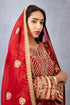 Look beautiful in this red Sheer Silk Organza Odhni, featuring a bright red color and scallop border. The elaborate Hand embroidery, Dori embroidery and Hand Adda work on this Odhni will take your breath away. Experience luxurious comfort and style like never before.