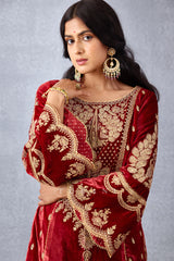 Bridal wear Silk Velvet Kurta Set with Embroidered dupatta