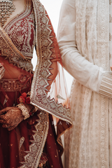 Sruthi with Her Partner in Our Custom Sindoori Suhani Lehenga Set & Mogra Gaurish Sherwani Set