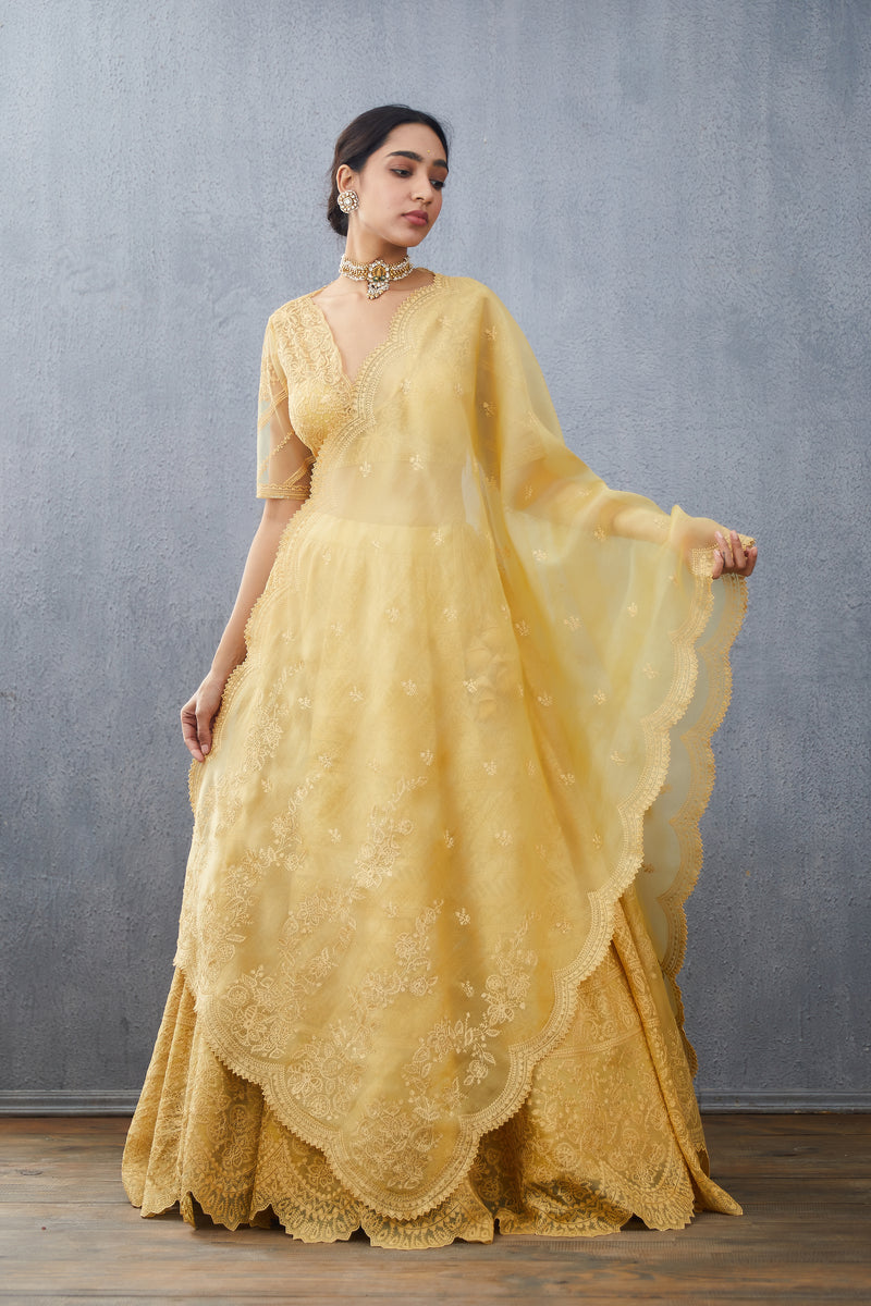 This beautiful Sunehra Advaita Odhni is made from luxuriously soft 100% Silk Organza, featuring an intricate Aari Embroidery that is sure to take any look to the next level. Its bright yellow colour adds a cheerful and vibrant touch to any outfit.