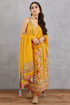 Sunehra Shabnam Odhni is a beautiful piece of art handcrafted with rich fabrics such as Cotton Kota, Handwoven Chanderi, and Silk Organza. It is adorned with Hand Block print designs, giving it an elegant appearance. The bright yellow colour gives it an appealing look that stands out. Perfect for special occasions, this odhni is sure to make you look dazzling.