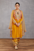 Be fashionable and comfortable in this Sunehra Zeenat Kurta Set. It is handcrafted using a blend of premium fabrics such as silk velvet, handwoven chanderi, cotton voile, cotton silk, and silk organza. Beautifully enhanced with digital print, hand embroidery, and hand adda work in yellow hue, it is perfect for any special occasion.