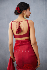 The Surkh Aadira Saree is made from luxurious silk organza, with intricate aari embroidery for an exquisite finish. Boasting a vibrant red hue, this saree is sure to turn heads and make a statement.