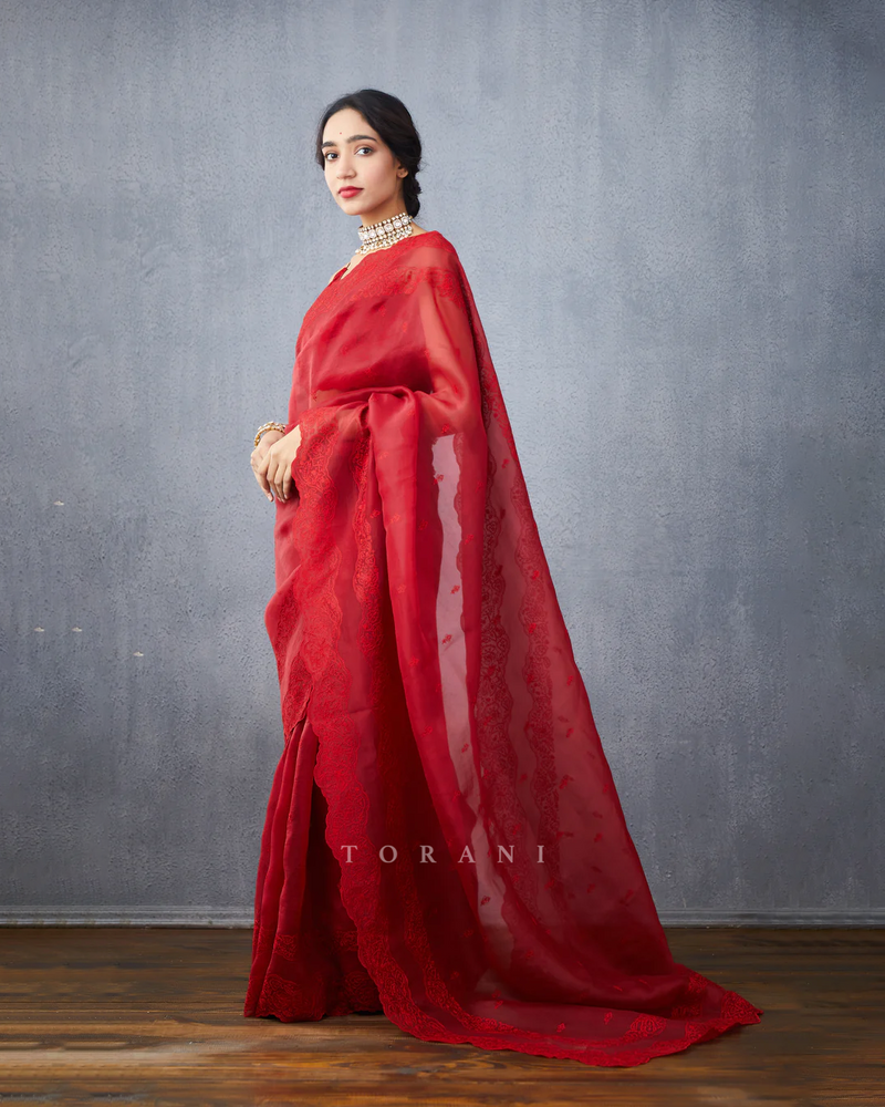 The Surkh Nida Blouse features a sumptuous net fabric combined with intricate Hand Embroidery. Its bold Red color is sure to make a statement. Perfect for formal occasions, this beautiful blouse brings out the best of modern elegance.