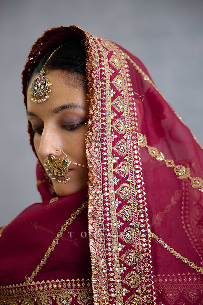 Wrap yourself in luxury with the Surkh Rano Odhni. Made with the finest Organza highlighted with intricate Doria and Dabka work, this vibrant yellow shade adds a statement of beauty to any outfit.