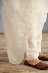 The Swetah Paavni Odhni is an elegant Odhni crafted from exquisite Silk Organza. Delicate and light, the Odhni is accentuated by stunning Aari embroidery work. With a bright white hue, this Odhni will add a touch of luxury to any ensemble.