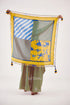 Nautical forms and florals juxtaposed and infused with hues of sundrenched Marigold and Oceanic Lapis. Finished with tassels at four corners and a sheer border. Style this stunning piece in your own unique way!
