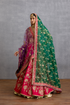 The Zamardi Malika Veil Odhni is a curated piece for brides who choose the elegance of emeralds on their big day. Crafted with organza and jeni silk fabrics, this embroidered odhni is truly a must-have for your bridal wardrobe.